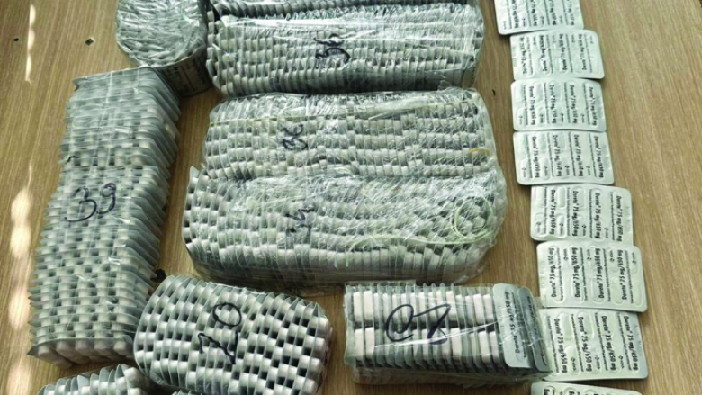 Në bagazhin e tij personal, në mëngët e këmishave, në këmbët e xhinseve dhe në çorapet e tij janë gjetur gjithsej 359 lenta me nga 10 pilula “Doreta” që përmbajnë 75 mg hidroklorur Tramadol”, thuhet mes tjerash në njoftimin e Doganave.